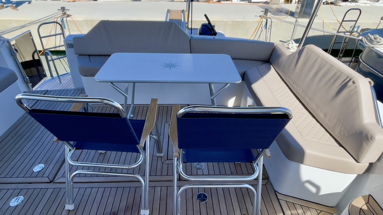 Cockpit cushions, Cockpit table,Cockpit/stern, outside shower, Dinghy, Electric anchor windlass