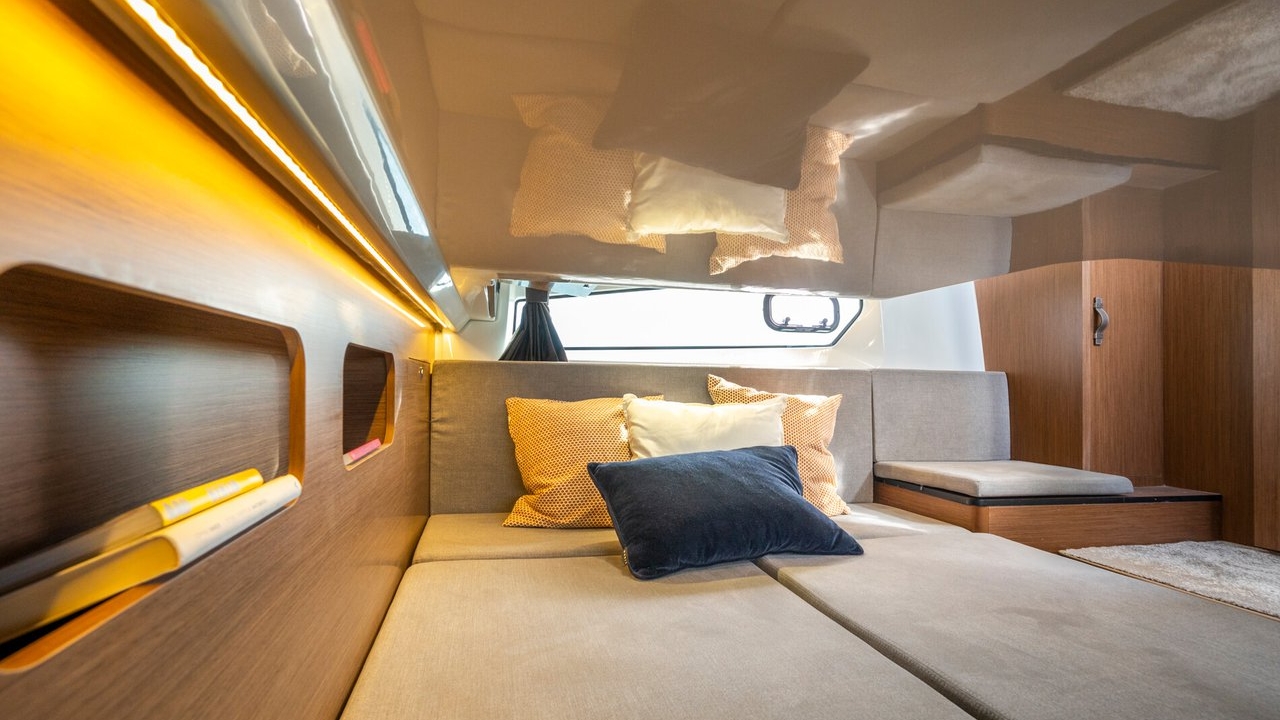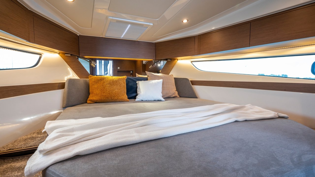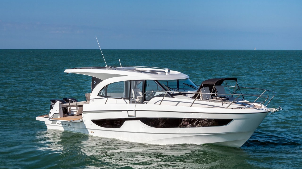 With a length overall of 11 metres, the flagship of the Antares line is the perfect illustration of a family cruiser. Stylish and contemporary, the powerboat focuses on space, comfort and safety.