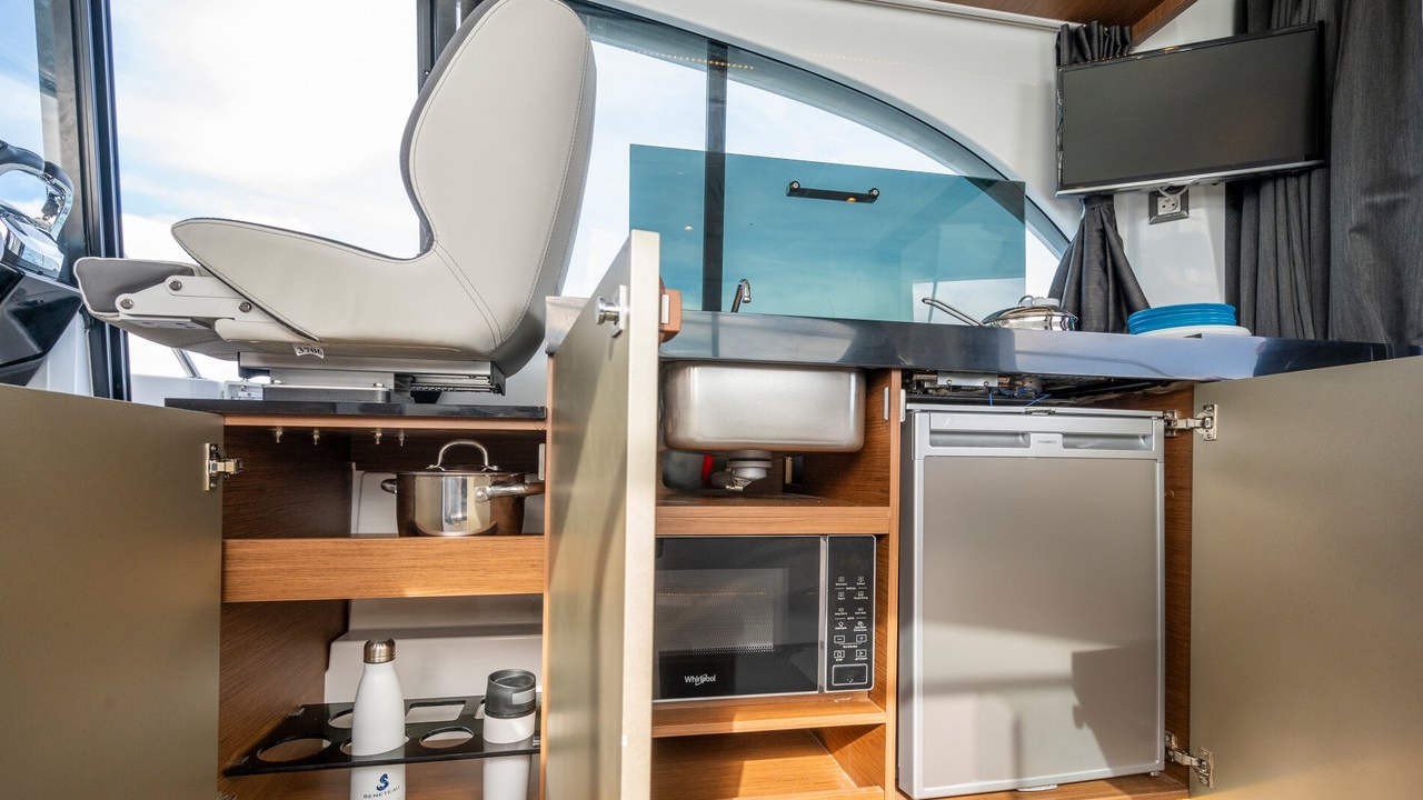Freezer - 75 l, Hot water, Kitchen utensils (Galley equipment, cutlery), Oven, Refrigerator, Sink