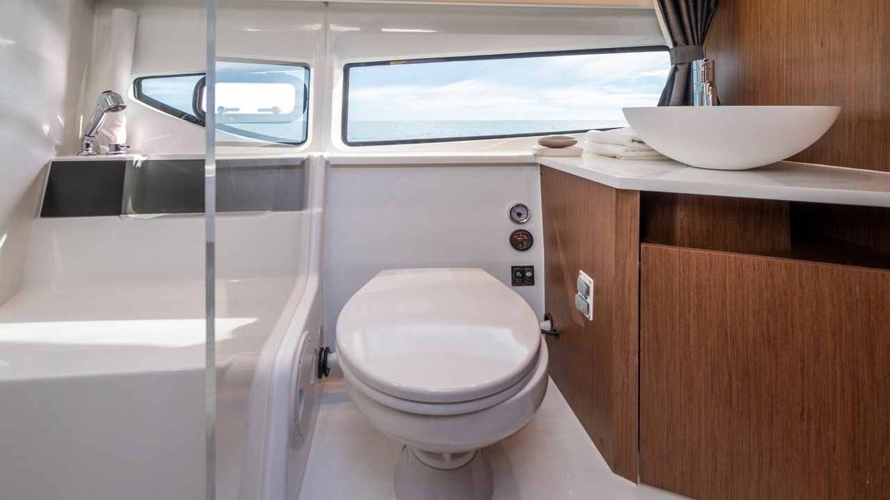 Bathing platform, Bimini top, Cockpit fridge - 80 L, Cockpit/stern, outside shower, Electric anchor windlass, Fridge on flybridge - 20 L, Gangway, Main anchor,