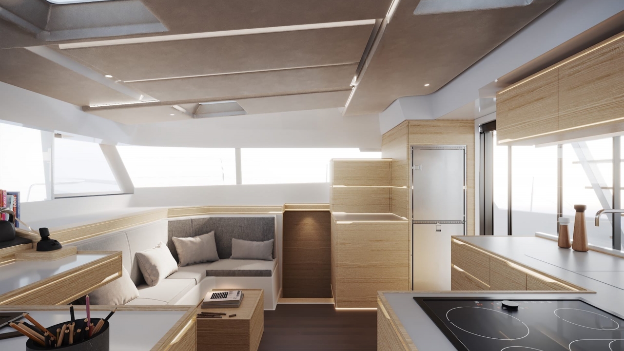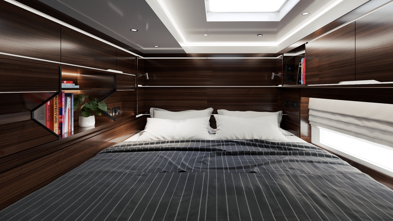 Bold, dynamic design of the hulls with the inverted bows gives you the sensation of constant movement while the signature grill on the deckhouse and sporty openings at the stern add even more dynamics to the overall impression.