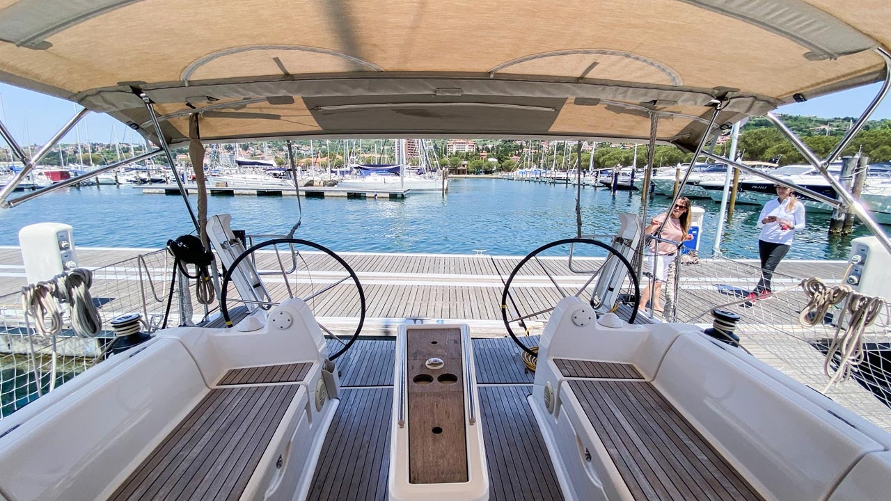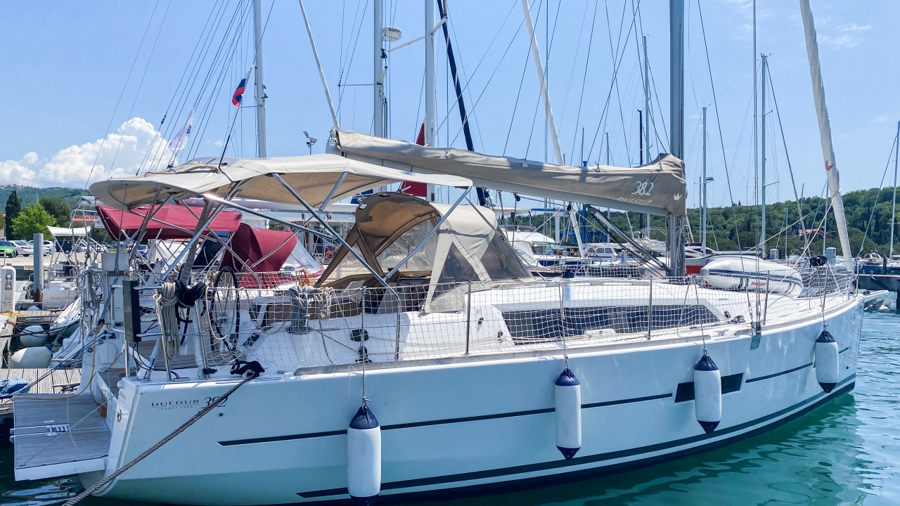 The Sailing yacht Dufour 382 GL „Barka“, built in 2018, is moored at the Charter-Partner Base in Marina Izola, Portorož - Slovenia. The yacht has 3 cabins, 6 + 2 persons can sleep, and has 1 toilet/shower.