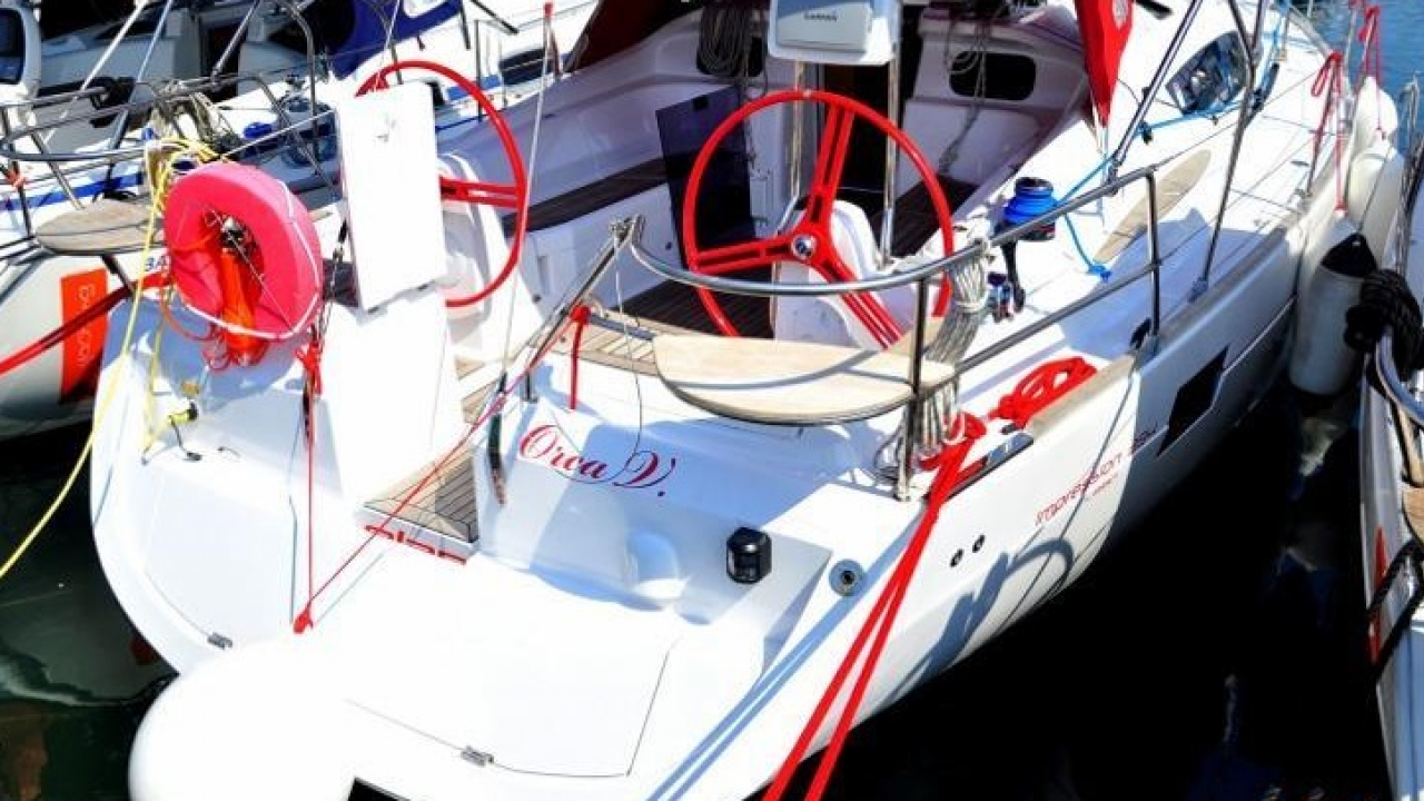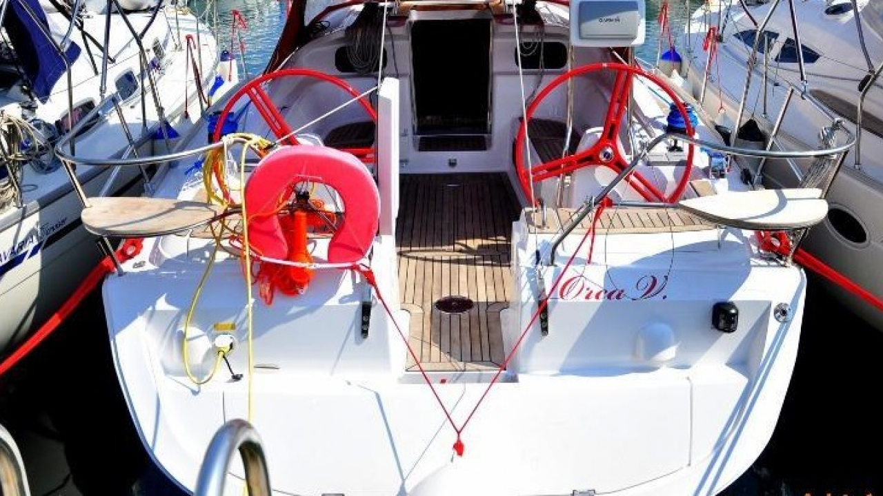Optional Extras:Railing net: 80€ per booking, Regatta charge: + 20%, Gennaker: 100€/week, Outboard engine: 90€/week, Skipper: 170€ + food