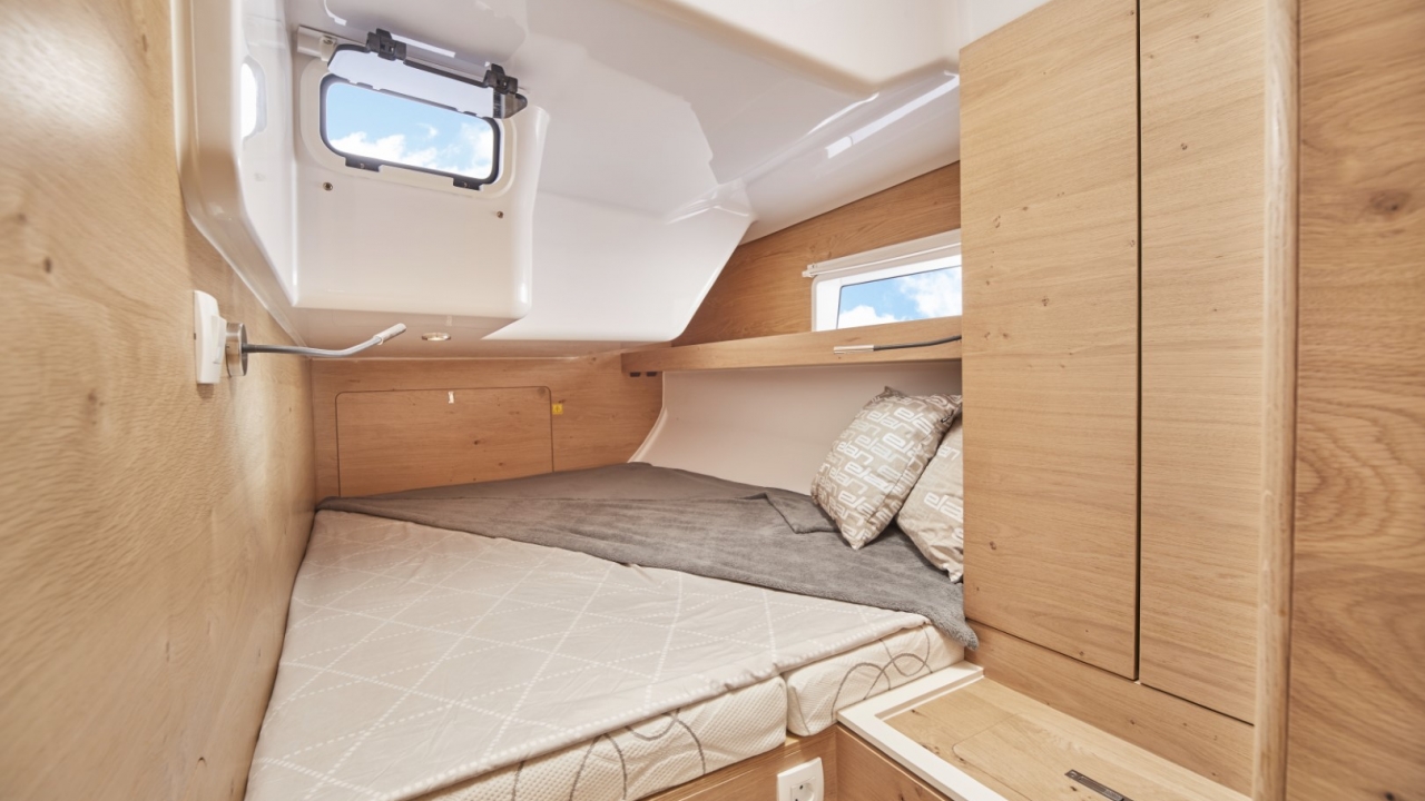 This Elan yacht has been designed with every comfort in mind. Leisure when cruising is guaranteed. The yacht has 4 cabins (3 double beds + cabin with bunk beds), 8 + 2 persons can sleep, and 2 toilets/showers.