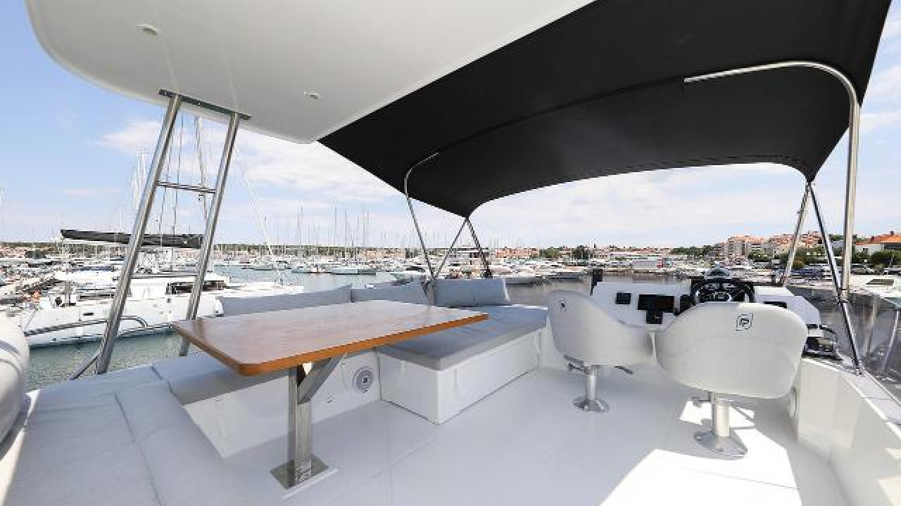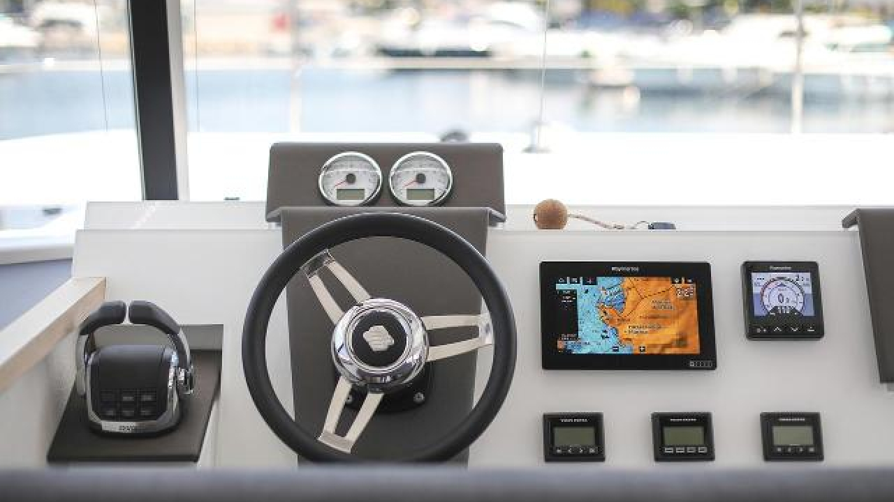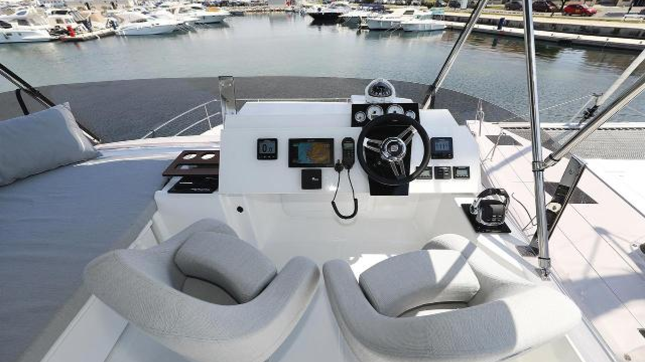 You may welcome up to 8 persons around the cockpit table. Options can also contribute to make the cockpit even more convenient, with space for an extra fridge, a barbecue and a hydraulic gangway.