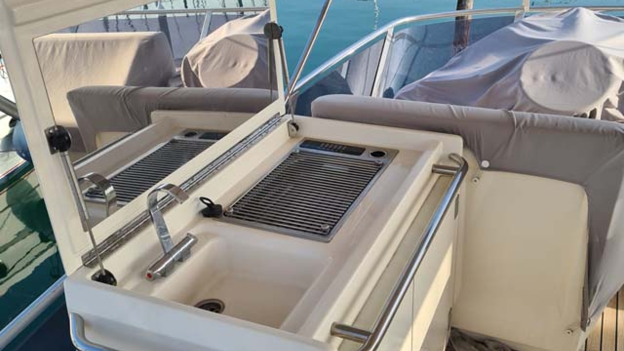 Anchor line, Anchor swivel, Bimini Top - Mini, Bimini top, Cockpit table, Cockpit/stern, outside shower, Dinghy,  Electric anchor windlass, Fenders, Gangway,