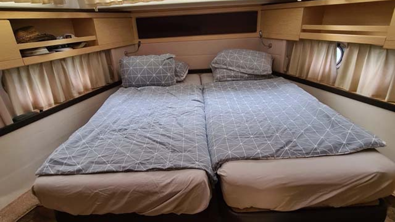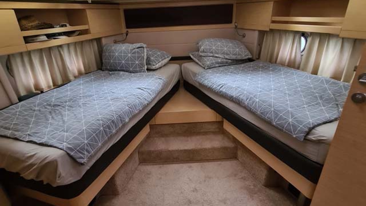 Attention ! 1 cabin is reserved for the skipper - 2 cabins are available for guests (max. 4 persons).