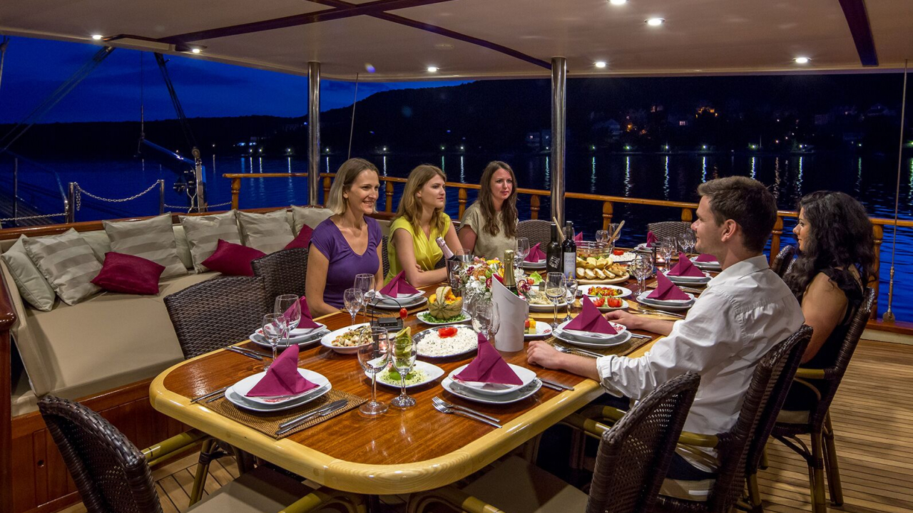 Important Note: All inclusive option includes some Croatian wines served by the crew, not all of the bar's list. Not included: Imported wines, beers & spirits. Drinks and beverages completely supplied by clients - corkage fee: 700 Euros per week.