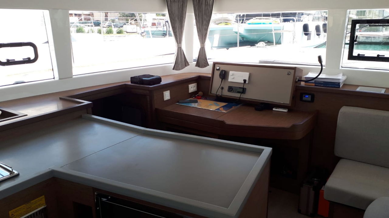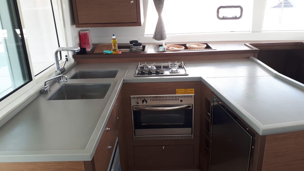 Obligatory Extras: Comfort pack: 430€ per booking (Dinghy, Outboard motor with full fuel tank, final cleaning, bed sheets & towels, kitchen gas, coffee machine + 10 capsules,WIFI (75 GB/week), taxes and fees, Deposit: 2.500€