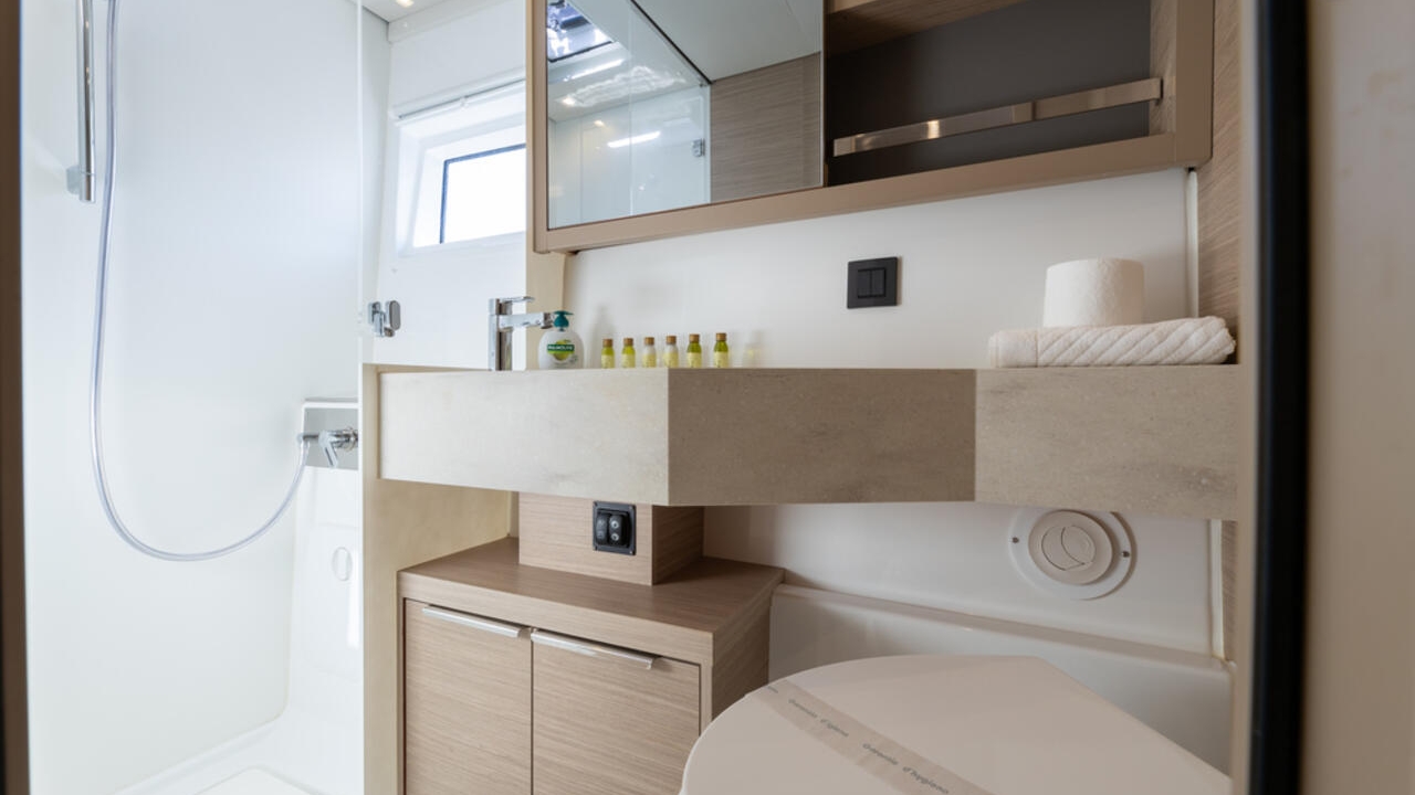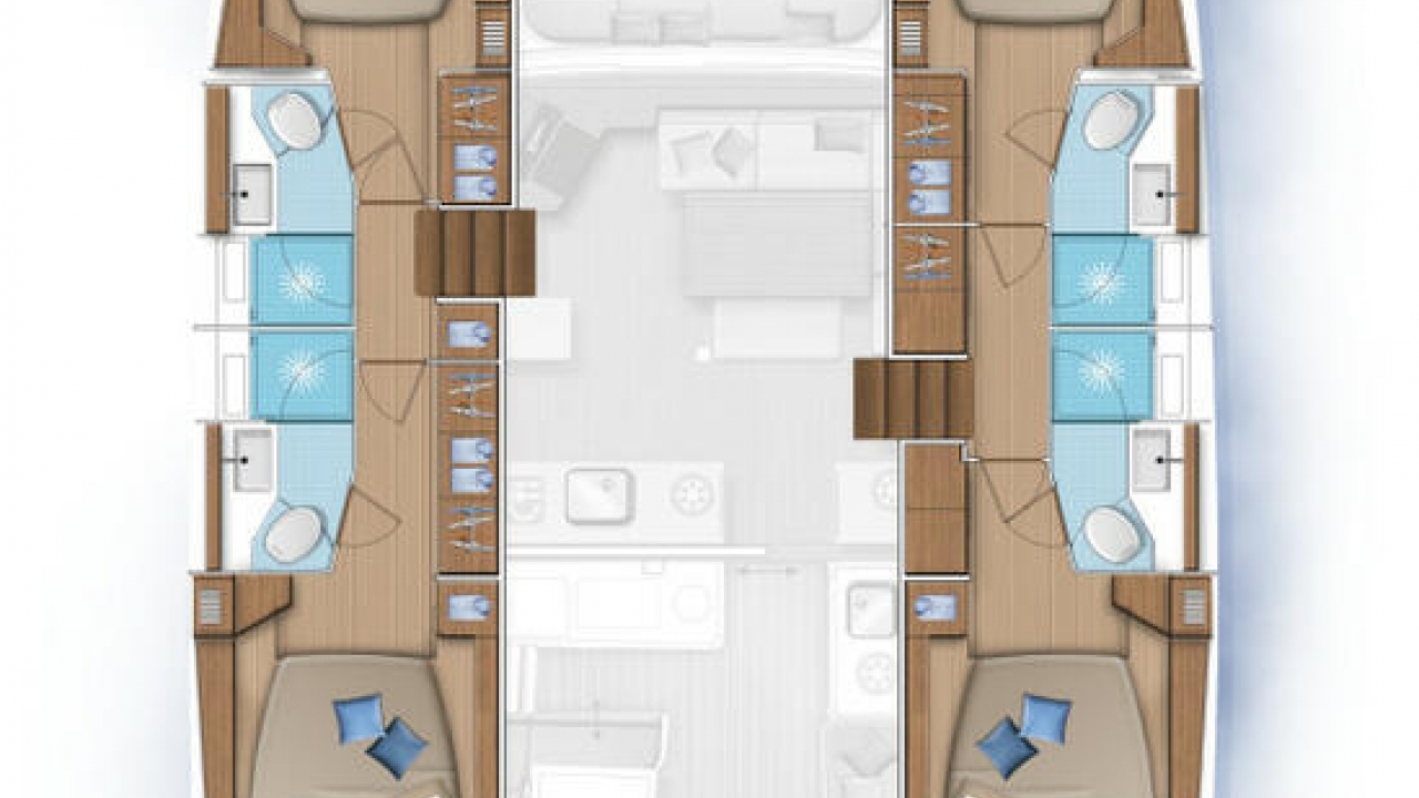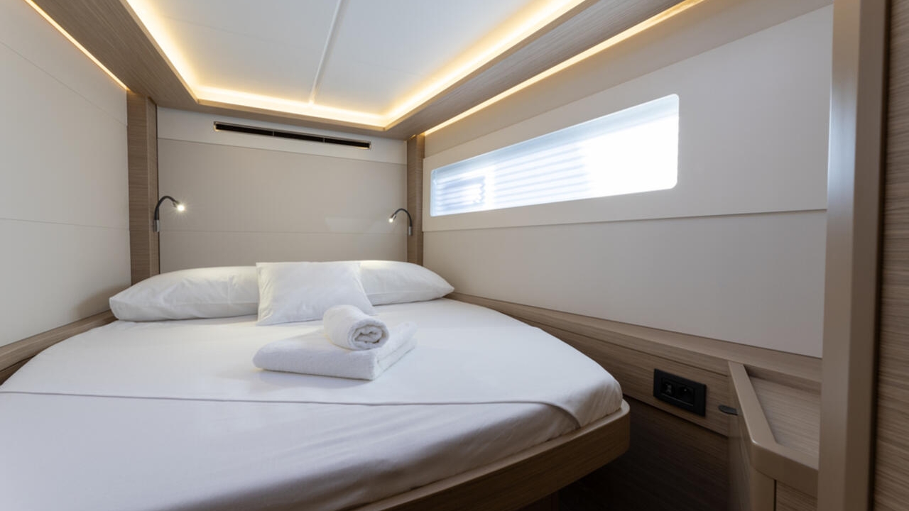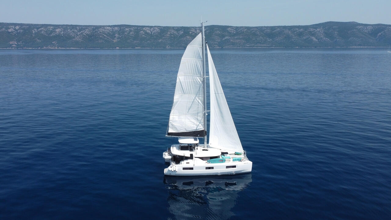 The sailing catamaran – Lagoon 46 fits perfect with its 4 to 6 cabins and the 4 bathrooms in our fleet.