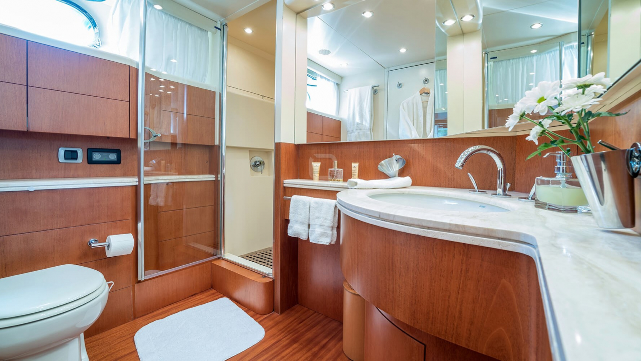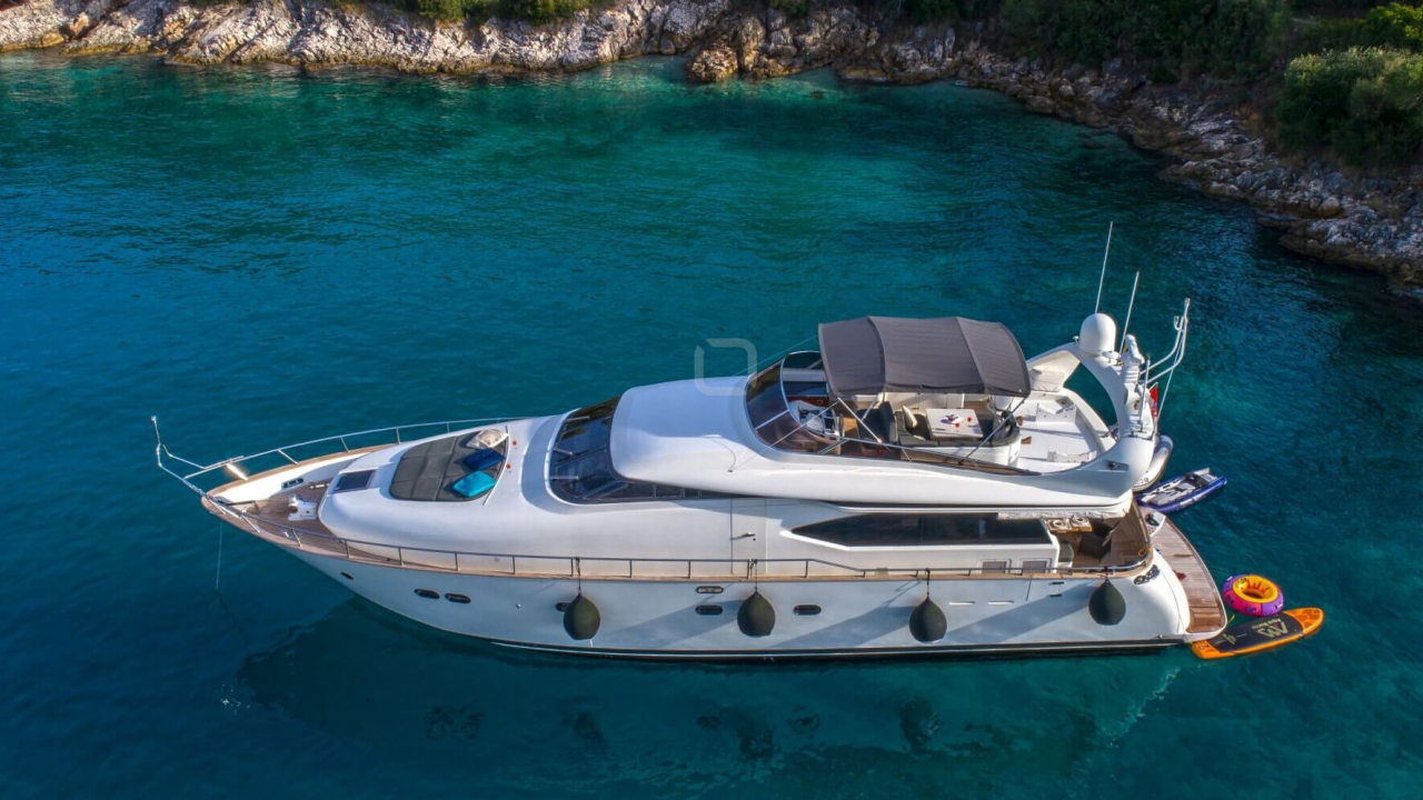 Air conditioning, generator ONAN, BBQ, fridge on the flybridge, water maker, ice maker, washing/drying machine, dishwasher, microwave, deck and flybridge sunbathing cushions, hydraulic gangway with RC, bathing platform, bimini top.