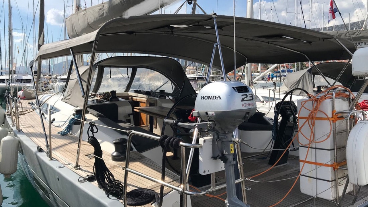 Obligatory Extras: Comfort pack: 350€ per booking (Dinghy, Outboard motor with full fuel tank, final cleaning, bed sheets & towels, kitchen gas, coffee machine + 10 capsules,WIFI (75 GB/week), taxes and fees, Deposit: 2.500€