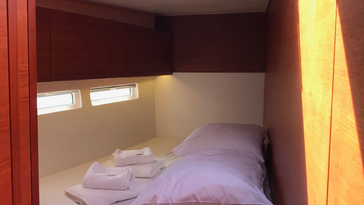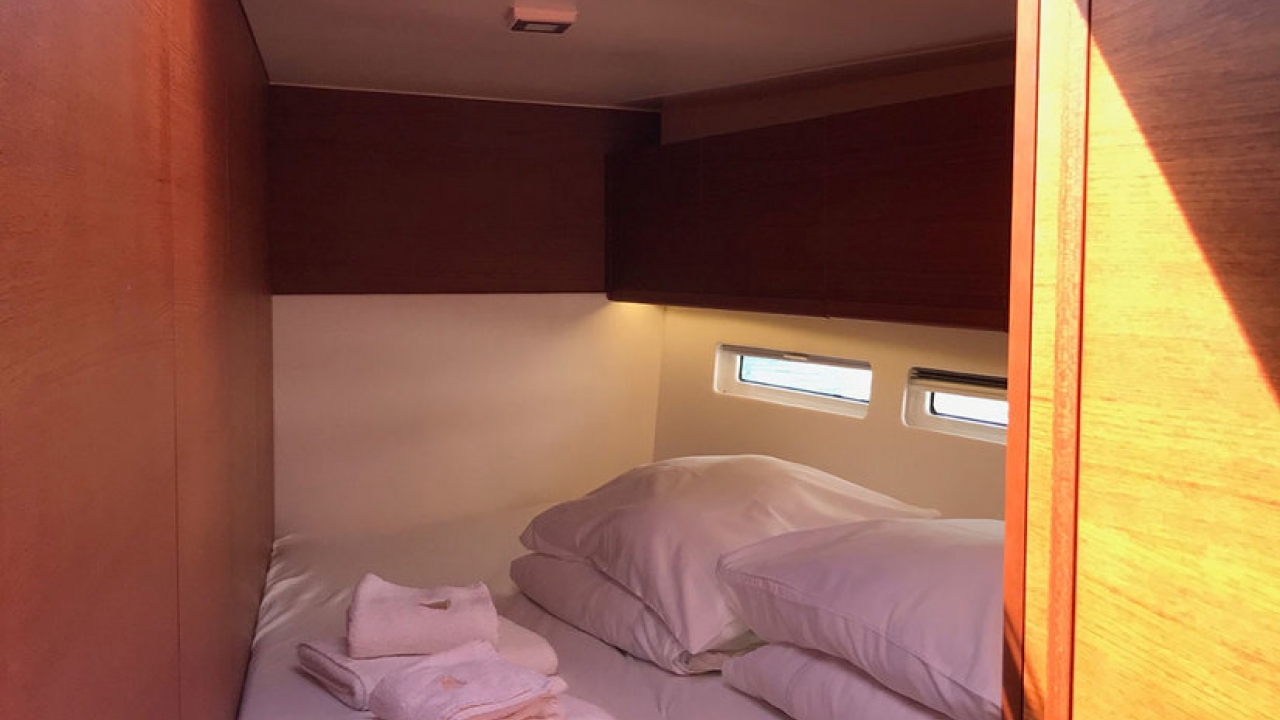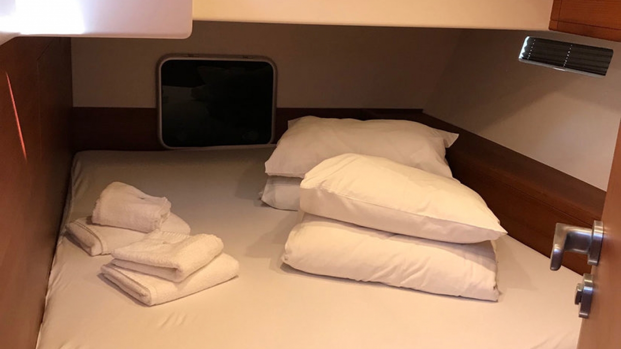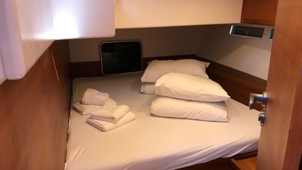 Optional Extras: Regatta surcharge: 20% of charter amount + double security deposit, gennaker: 400€/per week( for regata) / 200€ per week, Stand up paddle (SUP): 130€/week, Jet Ski (1500€ deposit): 1.900€ per week / 2.200€ per week, Seabob F5 : 950€ per week, Kayak: 170€ per week, Railing net: 150€ per booking, Skipper: 1.750€ per week + food, Hostes: 1.470€ per week + food, Cook: 1.750€ per week + food, Pets on board: 100€ per pet, Transfer on request, Early boarding on request (limited offer), FUN PACK A - Jokerboat Coaster 470 + 70HP Yamaha, Wakeboard, waterskies, banana, donut; Skipper license mandatory: 1.100€ per week + 700€ security deposit, FUN PACK B - Highfield OM 540 + 100HP Honda, Wakeboard, waterskies, banana, donut plus security deposit 1000 EUR, Skipper license mandatory, 350 EUR per day: 1.500€ per week