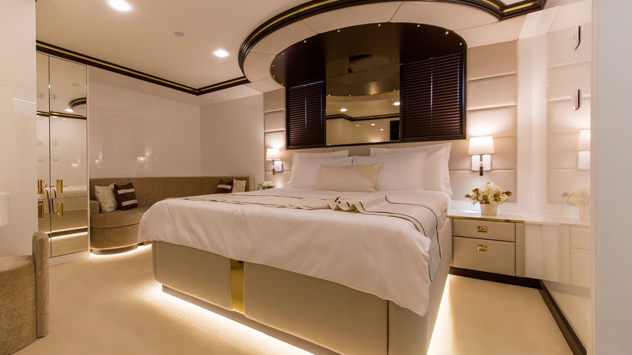 between 20m2 and 25m2, and two can be converted to twin cabins. Equipped with a Smart TV/DVD, fridge, safe, Intercom,