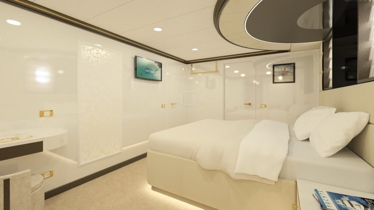 6 en-suite cabins  (20-24m2); Master king-size bed cabin, VIP king-size bed cabin, 2 x Guest queen size bed cabin, 2 x Guest queen size bed cabin convertible into a twin.