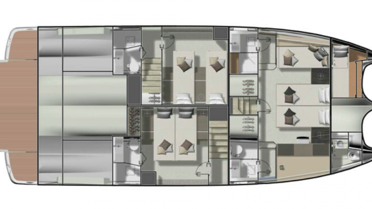 Optional Extras: Cook: 1.750€ per week + food (Prepares 3 cooked meals per day/galley responsibilities. Meals for the cook are not included in the daily rate.),  Hostes: 1.750€ per week + food ( Preparation of breakfast and lunch, boat interior cleaning.), railing net: 200€ per week, Transfer Airport Split - ACI Split up to 8 Pers: 80€, SUP: 120€ per week.