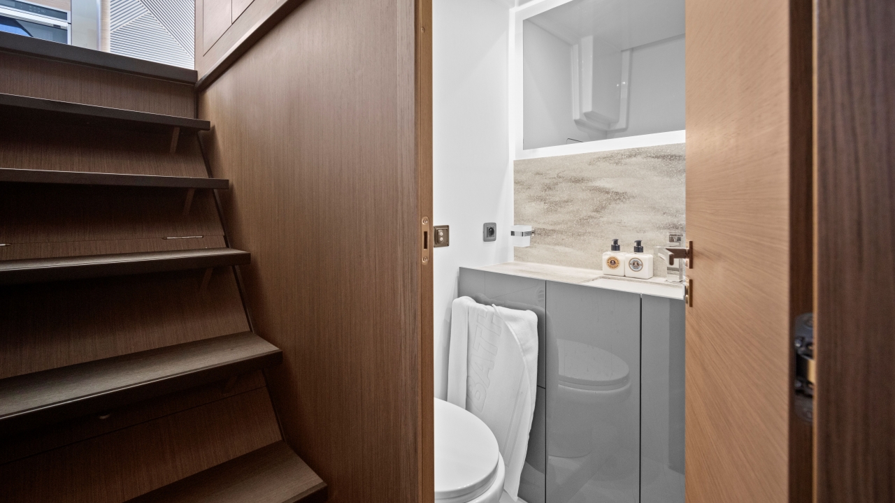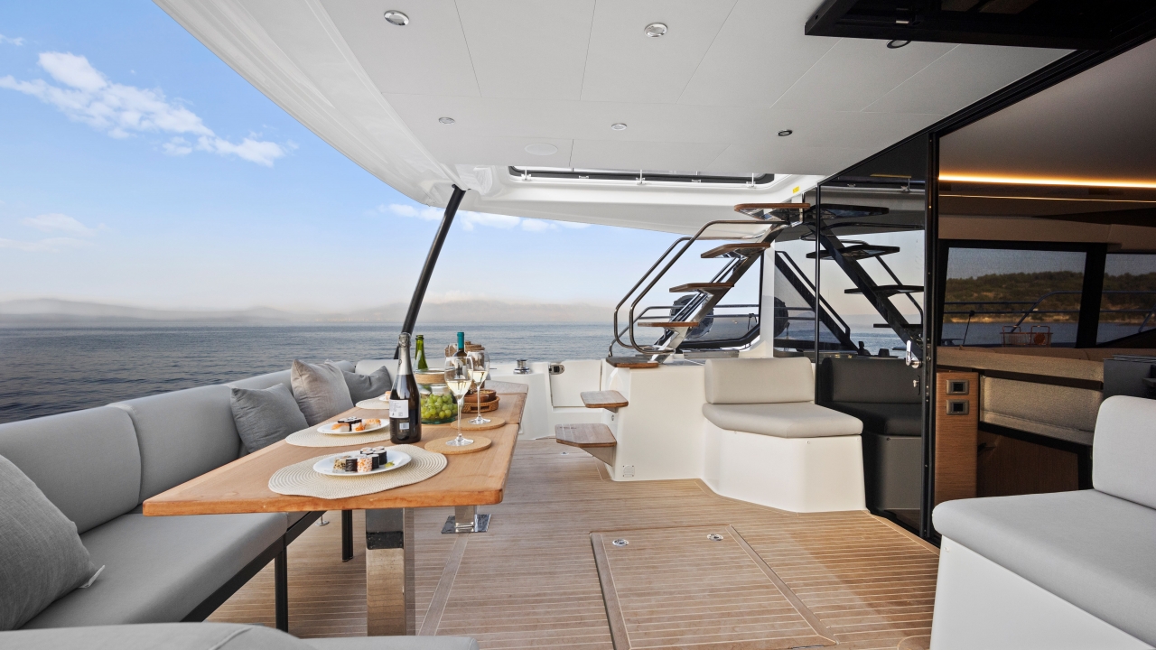 Dinghy with outboard engine - 20HP, Fridge on flybridge, Hard Top Bimini, Hydraulic gangway, Hydraulic lifting swimming platform, Teak cockpit, Teak deck
