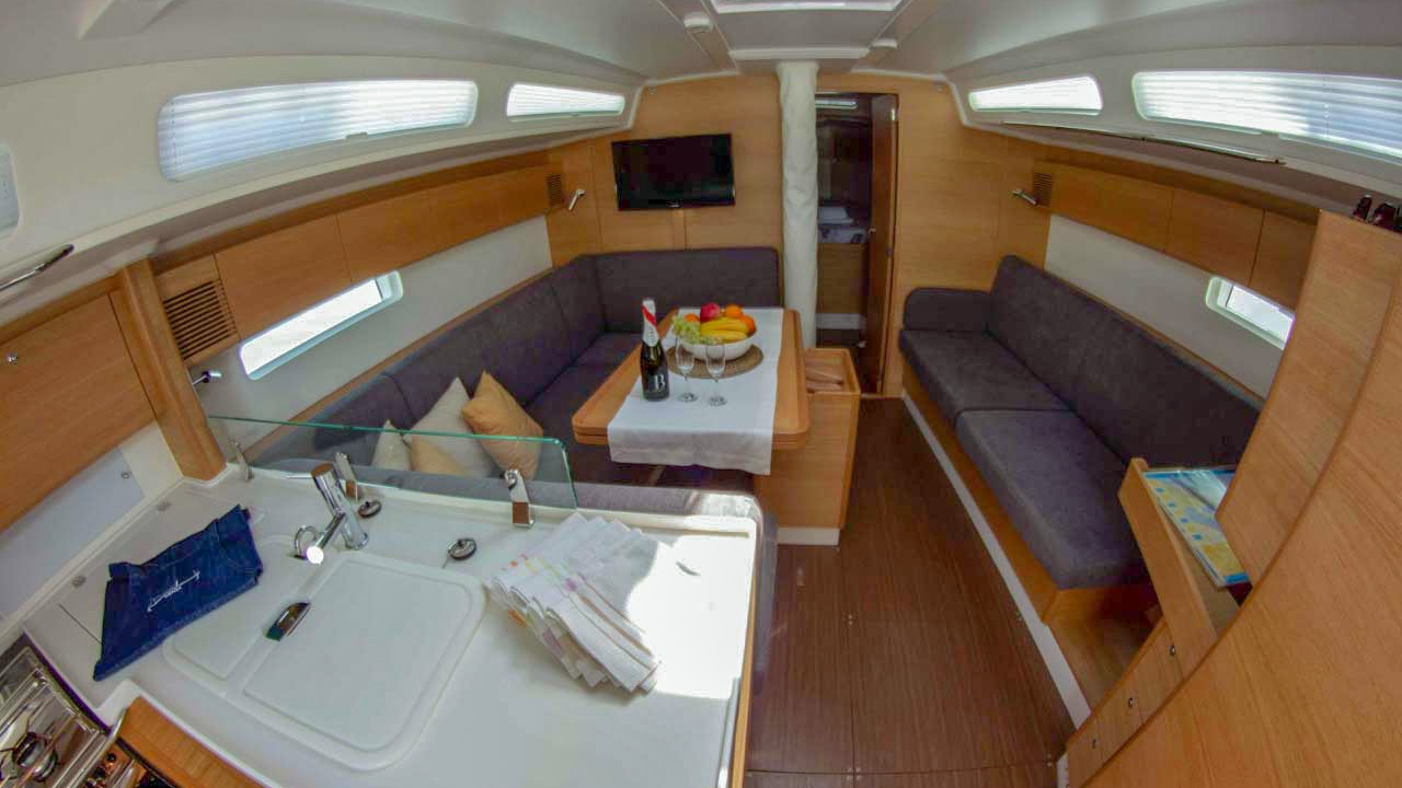 For a careless vacation, start sailing with the extremely well-equipped cruising yacht Cum Ventis (EX Xirena). It is highly stable and incredibly easy to maneuver no matter how challenging conditions get. Cum Ventis is ideal for a crew of 6 since it has 3 double cabins and 2 electric heads with showers. Relax in the cosy salon and a fully-equipped galley.